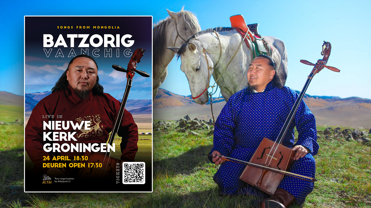 On Friday, April 24, master throat singer Batzorig Vaanchig brings the powerful sounds of the Mongolian steppe to the historic Nieuwe Kerk in Groningen. Known worldwide for his extraordinary Mongolian throat singing (khöömii) and his mastery of traditional instruments such as the morin khuur (horse-head fiddle) and tovshuur (lute), Batzorig presents a unique concert featuring ancient songs, traditional melodies, and the hypnotic sounds of Mongolian music.